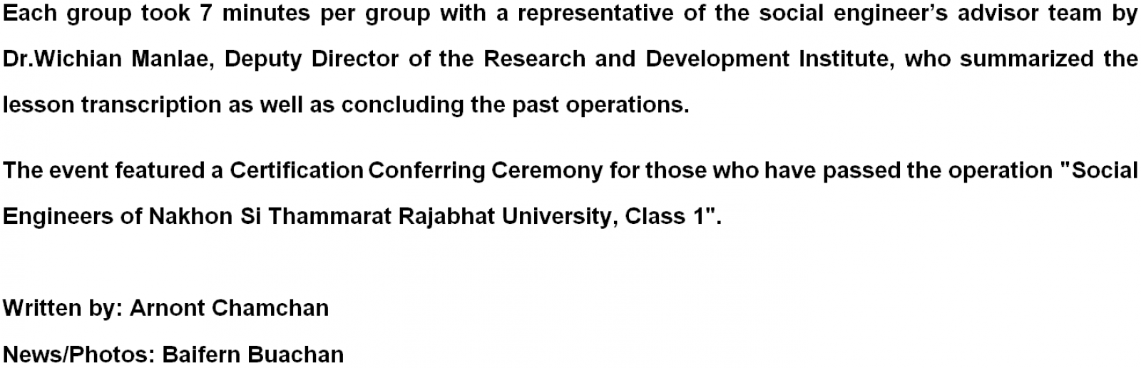 Post-Training of "Social Engineers of Nakhon Si Thammarat Rajabhat University, Class 1"