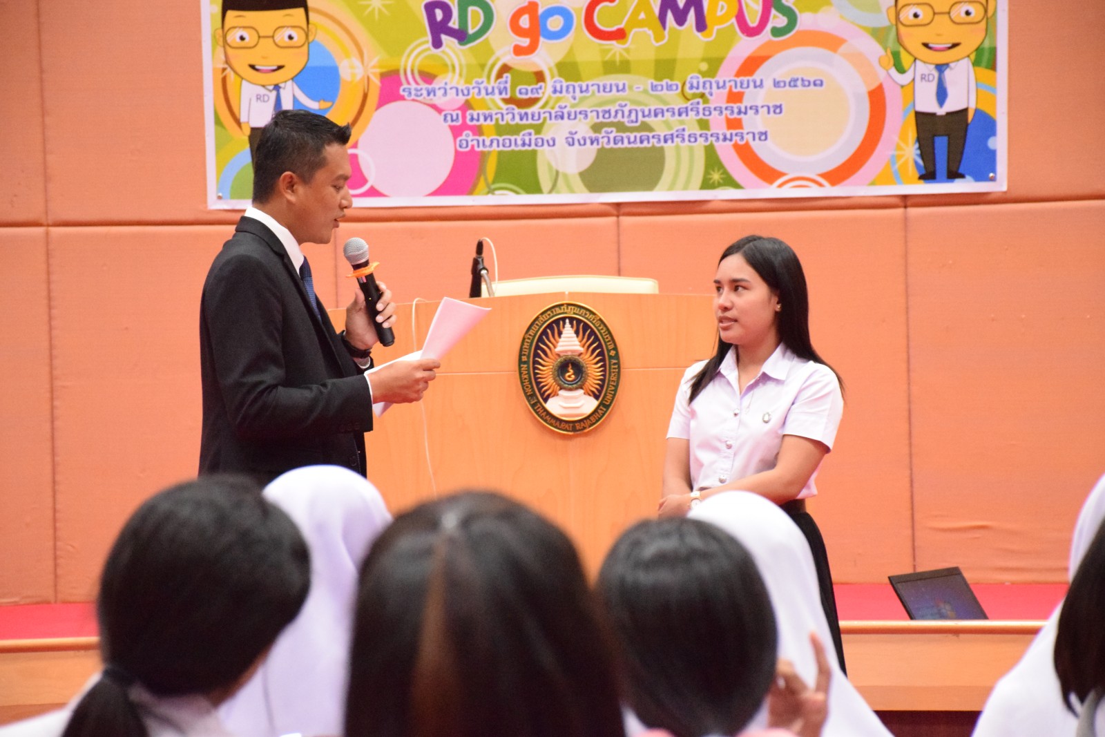 โครงการ "RD go Campus" เป็นโครงการดี ๆ ที่มหาวิทยาลัยราชภัฏนครศรีธรรมราชได้ดำเนินการมาอย่างต่อเนื่อง เพื่อพัฒนาคุณภาพนักศึกษาให้มีความพร้อมสำหรับการออกไปทำงานในสถานที่จริง และเสริมสร้างความมั่นใจให้นักศึกษาสามารถทำงานได้อย่างมีประสิทธิภาพจากการได้รับการถ่ายทอดความรู้จากผู้มีประสบการณ์จากการทำงานในสายวิชาชีพโดยตรง ซึ่งก่อนการอบรมนักศึกษาได้มีการเตรียมความพร้อมกันเป็นอย่างดี จึงทำให้การจัดกิจกรรมในครั้งนี้นักศึกษาได้รับความรู้เป็นอย่างมาก