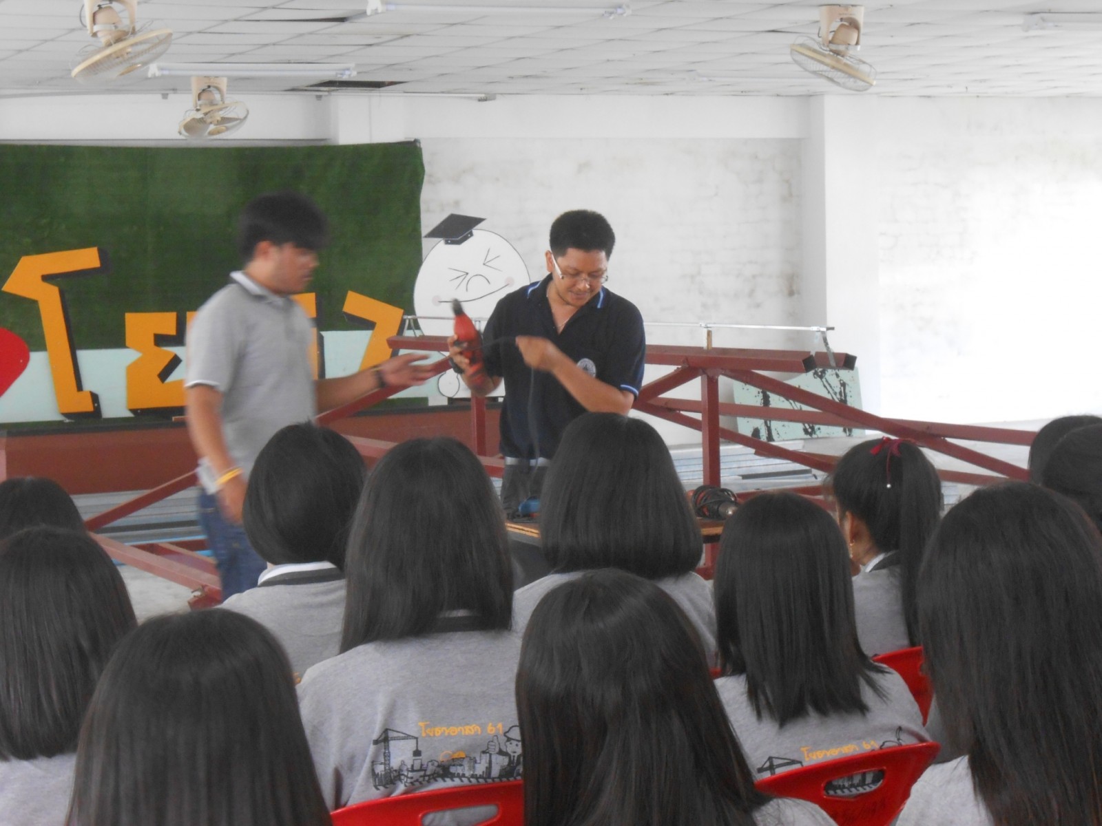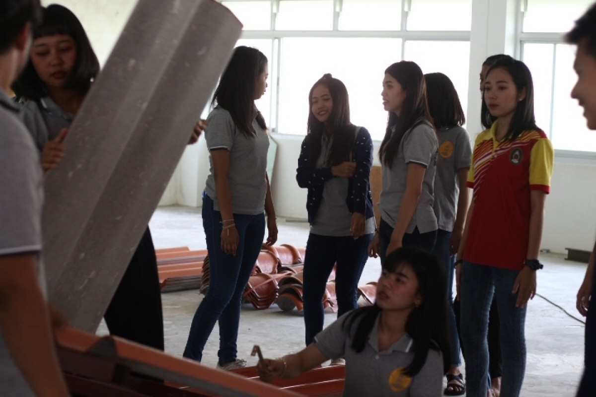 วันเสาร์ที่ 20 เมษายน พ.ศ.2562 นักศึกษาชมรมโยธาอาสา สาขาเทคโนโลยีโยธา คณะเทคโนโลยีอุตสาหกรรม มหาวิทยาลัยราชภัฏนครศรีธรรมราช นำโดย อาจารย์สุวัฒนา นิคม และอาจารย์วิศรุต ช่วยจันทร์ ที่ปรึกษาชมรมโยธาอาสา ได้ร่วมกันจัดกิจกรรมโครงการพัฒนาทักษะงานก่อสร้าง กิจกรรมอบรมการมุงหลังคาและการซ่อมหลังคากระเบื้องลอนคู่ ณ ลานกิจกรรมชั้น 2 อาคารที่ 24 มหาวิทยาลัยราชภัฏนครศรีธรรมราช