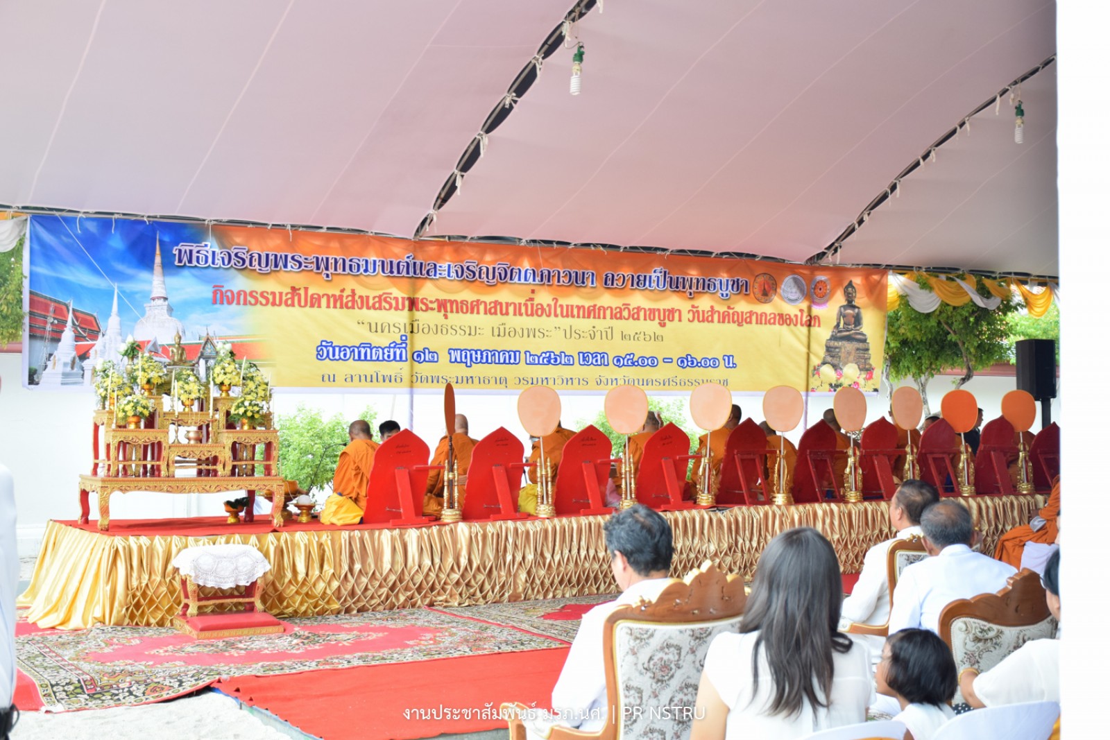 วันอาทิตย์ ที่ ๑๒ พฤษภาคม ๒๕๖๒ คณะอาจารย์ บุคลากร และนักศีกษา มหาวิทยาลัยราชภัฏนครศรีธรรมราช เข้าร่วมพิธีเจริญพระพุทธมนต์และเจริญจิตภาวนา ถวายเป็นพุทธบูชา กิจกรรมส่งเสริมพระพุทธศาสนาเนื่องในเทศกาลวิสาขบูชา วันสำคัญสากลของโลก "นครเมืองธรรมะ เมืองพระ" ประจำปี ๒๕๖๒ ณ ลานโพธิ์ วัดพระมหาธาตุวรมหาวิหาร จังหวัดนครศรีธรรมราช