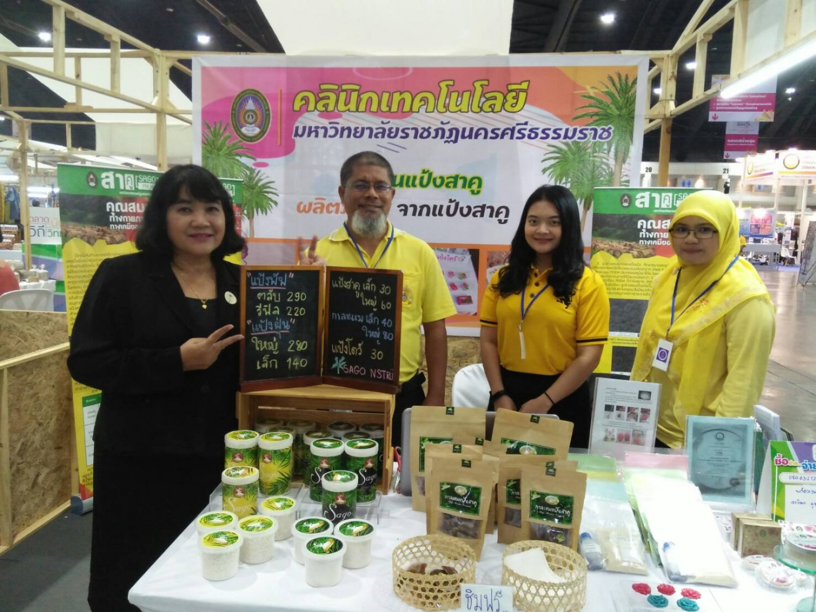 ในส่วนของ คณะวิทยาศาสตร์และเทคโนโลยี มหาวิทยาลัยราชภัฏนครศรีธรรมราช ได้จัดคลินิกเทคโนโลยี ภายใต้ชื่อ “หมู่บ้านแป้งสาคู” ซึ่งมีการจำหน่ายผลิตภัณฑ์จากแป้งสาคู จังหวัดนครศรีธรรมราช ประกอบด้วย กาละแมแป้งสาคู แป้งพัฟ แป้งฝุ่น แป้งสาคู แป้งโดว์ ซึ่งได้รับความสนใจจากผู้ร่วมงานเป็นอย่างมาก โดยมีผู้ร่วมจัดนิทรรศการ ได้แก่ ผศ.ขนิษฐา กีรติภัทรกาญจน์ รองคณบดีฝ่ายวิชาการและกิจการนักศึกษา ดร.มนิต พลหลา รองคณบดีฝ่ายวิจัยและบริการวิชาการ นางสาววากิณา บุญมาศ เจ้าหน้าที่โครงการคลินิก นางสาวภัทรมน สวนอินทร์ นักวิทยาศาสตร์