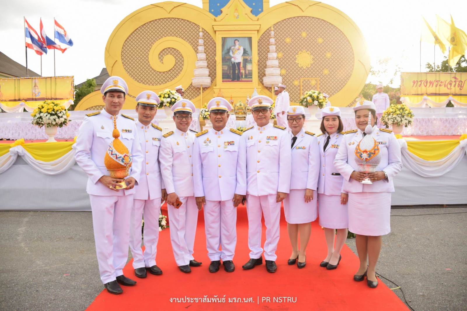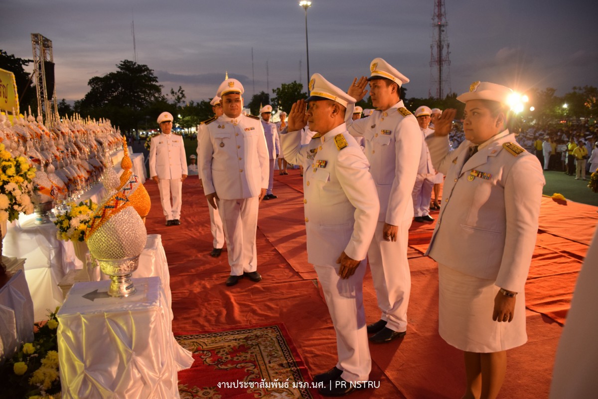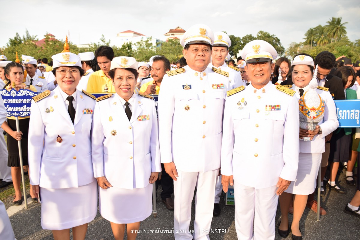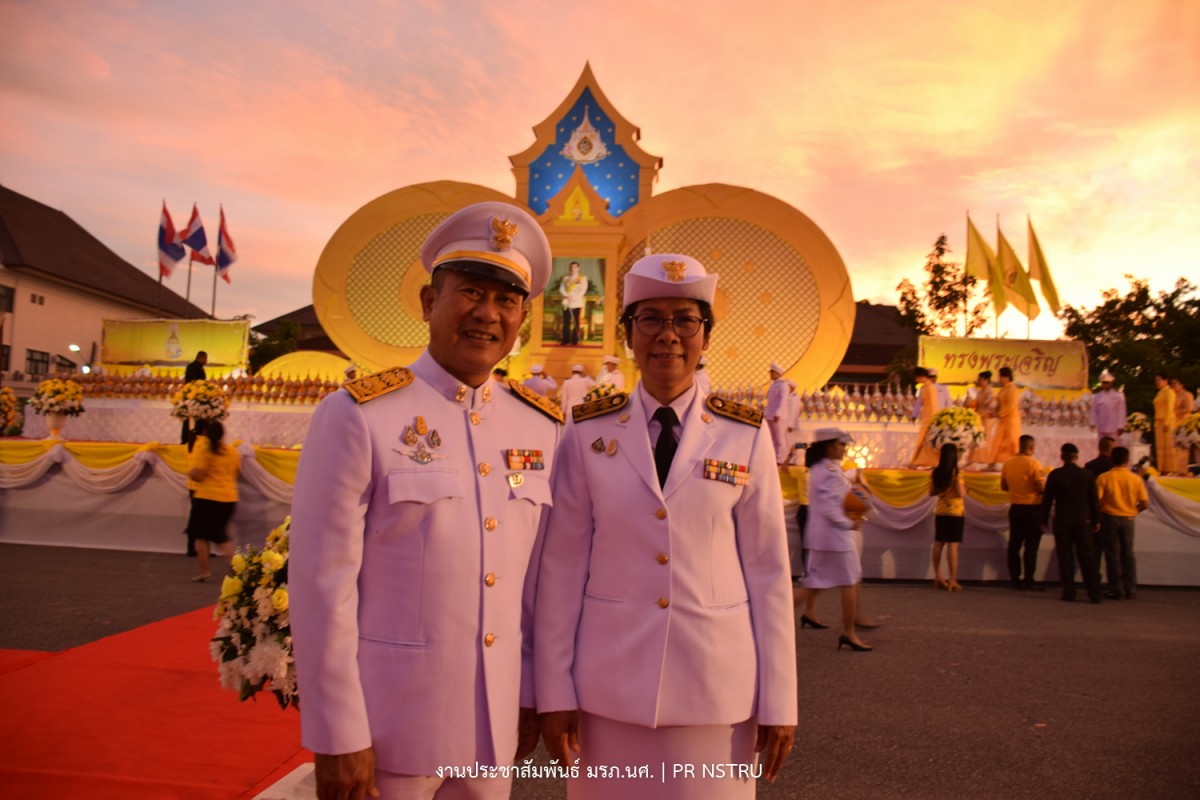 ผู้ช่วยศาสตราจารย์ ดร.ฆนัท ธาตุทอง อธิการบดีมหาวิทยาลัยราชภัฏนครศรีธรรมราชพร้อมด้วยคณะผู้บริหารร่วมถวายเครื่องราชสักการะและจุดเทียนถวายพระพรชัยมงคลแด่พระบาทสมเด็จพระเจ้าอยู่หัว เนื่องในโอกาสวันเฉลิมพระชนมพรรษา 28 กรกฎาคม 2562 ณ มณฑลพิธีสนามหน้าเมืองนครศรีธรรมราช โดย นายจำเริญ ทิพญพงศ์ธาดา ผู้ว่าราชการจังหวัดนครศรีธรรมราช เป็นประธานในพิธี โดยพิธีได้เริ่มขึ้นในเวลา 18.00 น. ซึ่งหน่วยงานทั้งภาครัฐ ภาคเอกชน และสมาคมต่าง ๆ รวมทั้งภาคประชาชน จำนวน 134 หน่วยงาน ได้ร่วมพิธีถวายเครื่องราชสักการะ พานพุ่มทอง พานพุ่มเงิน และในเวลา 19.00 น. ประธานในพิธีถวายเครื่องราชสักการะ เปิดกรวยกระทงดอกไม้ธูปเทียนแพ จุดเทียนถวายพระพรชัยมงคล กล่าวถวายราชสดุดีเฉลิมพระเกียรติถวายพระพรชัยมงคล แด่พระบาทสมเด็จพระเจ้าอยู่หัว เบื้องหน้าพระบรมฉายาลักษณ์พระบาทสมเด็จพระปรเมนทรรามาธิบดี ศรีสินทรมหาวชิราลงกรณ พระวชิรเกล้าเจ้าอยู่หัว จากนั้นผู้เข้าร่วมพิธีได้ร่วมร้องเพลงสรรเสริญพระบารมี เพลงสดุดีจอมราชา และร่วมกันเปล่งเสียง "ทรงพระเจริญ" 3 ครั้ง พร้อมกัน นอกจากนี้ยังมีการจุดพลุดอกไม้ไฟเฉลิมพระพระเกียรติ12 ชุดอย่างยิ่งใหญ่สวยงามตระการตา รวมทั้งการแสดงมโนราห์ หนังตะลุง สมโภชเฉลิมพระเกียรติเพื่อแสดงออกถึงความจงรักภักดีและร่วมสำนึกถึงพระมหากรุณาธิคุณที่พระองค์ทรงมีต่อปวงชนชาวไทยทุกหมู่เหล่า