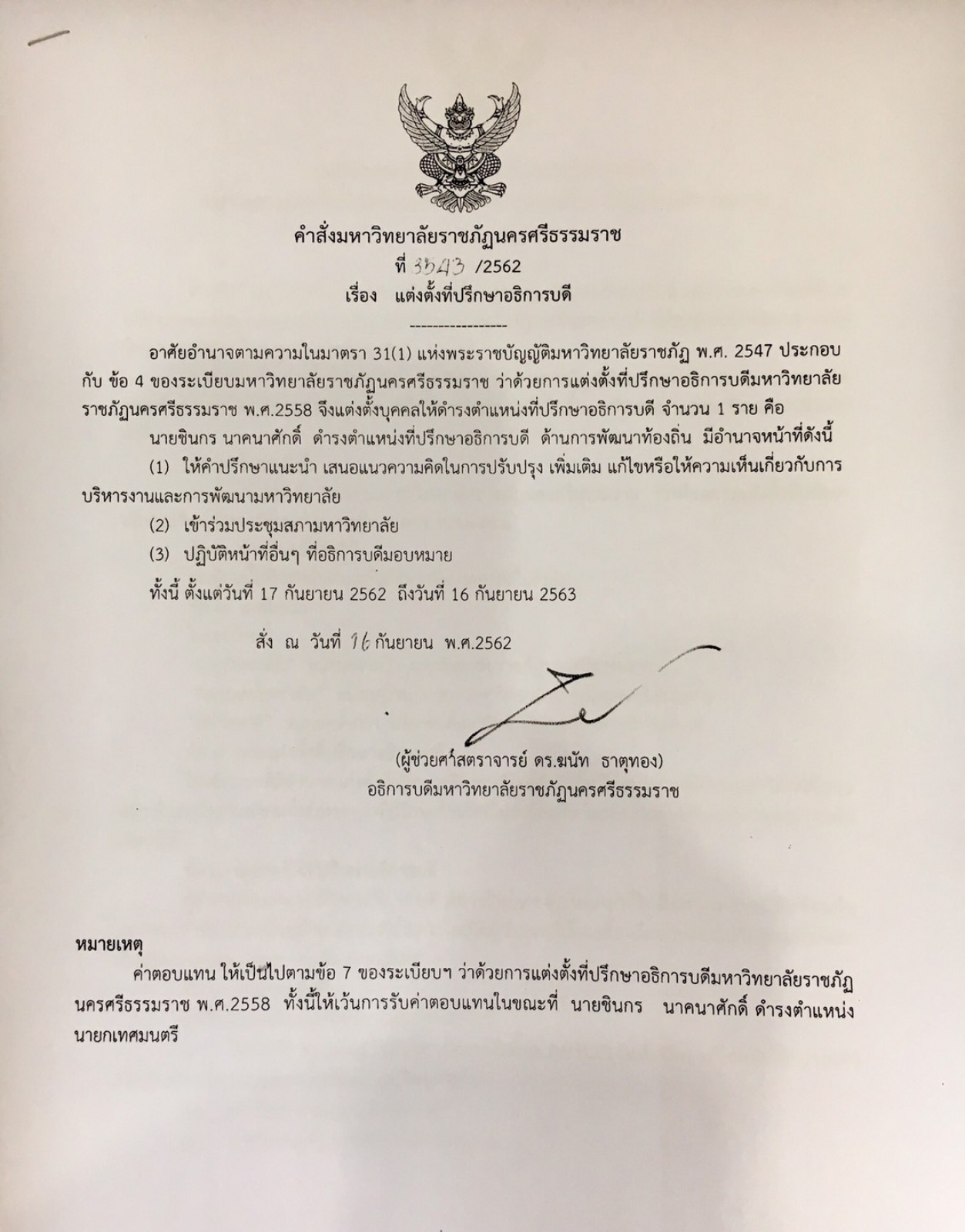 คำสั่งมหาวิทยาลัยราชภัฏนครศรีธรรมราช