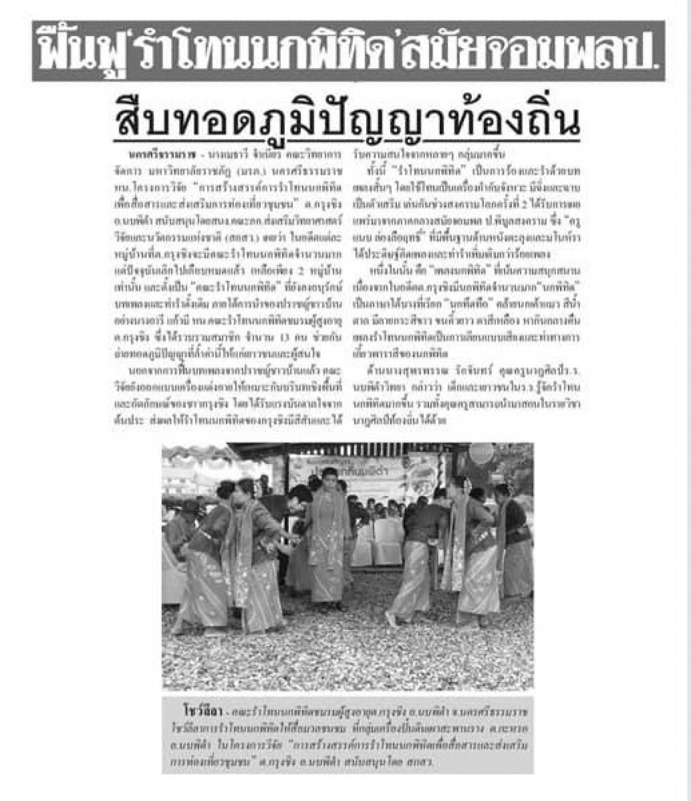 หนังสือพิมพ์ข่าวสด ฉบับวันที่ 31 ตุลาคม 2562 ลงข่าว “ฟื้นฟูรำโทนนกพิทิดสมัยจอม