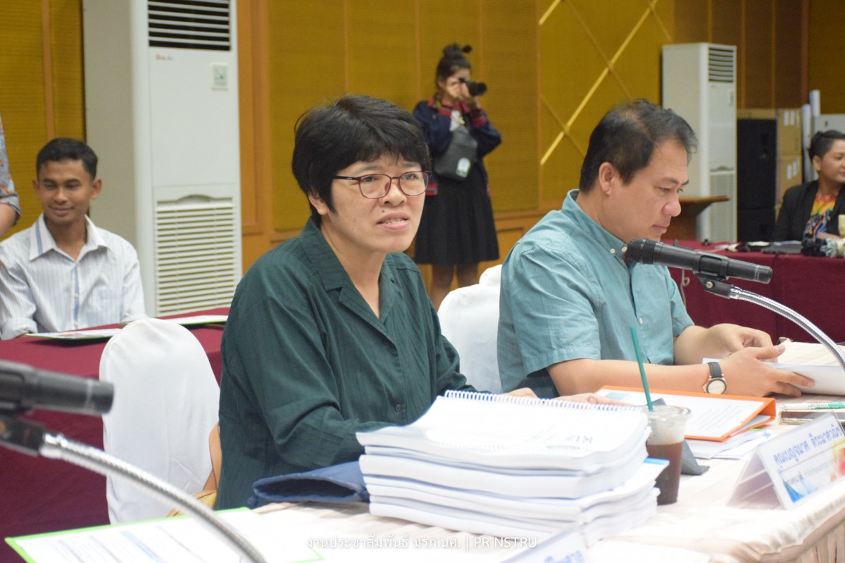 วันนี้ (18 ธันวาคม 2562) เวลา 08.00 - 16.30 น. สถาบันวิจัยและพัฒนา มหาวิทยาลัยราชภัฏนครศรีธรรมราช จัดการประชุมนำเสนอผลการดำเนินงานระยะรอบ 9 เดือน โครงการวิจัยท้าทายไทย กลุ่ม เรื่องนวัตกรรมเพื่อการพัฒนาพื้นที่ (ปีที่ 2) ภายใต้แผนโครงการการจัดการทรัพยากรและพัฒนานวัตกรรมแบบมีส่วนร่วมเพื่อยกระดับคุณภาพชีวิตและเศรษฐกิจของชุมชน อำเภอนบพิตำ จังหวัดนครศรีธรรมราช ณ ห้องประชุมนิลพยัคฆ์ สำนักงานอธิการบดี มหาวิทยาลัยราชภัฏนครศรีธรรมราช ซึ่งได้รับเกียรติจากผู้ทรงคุณวุฒิ ได้แก่ รองศาสตราจารย์ ดร.เทิดชาย ช่วยบำรุง คุณเบญจมาศ ตีระมาศวณิช และอาจารย์สุปราณี จงดีไพศาล โดยเวลา 08.30 น. ผู้ช่วยศาสตราจารย์ ดร.ฆนัท ธาตุทอง อธิการบดี เป็นประธานเปิดการประชุมนำเสนอ เวลา 08.45 น. บรรยายสรุปความก้าวหน้าผลการดำเนินงานระยะรอบ 9 เดือน ในภาพรวมโครงการวิจัยท้าทายไทยโดย ผู้ช่วยศาสตราจารย์ สุจารี แก้วคงรองอธิการบดี / ผู้ช่วยศาสตราจารย์ ดร.สมรักษ์ รอดเจริญ รองผู้อำนวยการสถาบันวิจัยและพัฒนา มหาวิทยาลัยราชภัฏนครศรีธรรมราช เวลา 09.00 น. นำเสนอโครงการที่ 1. ลักษณะทางชีววิทยา ความหลากหลายทางพันธุกรรมและรูปแบบการกระจายพันธุ์ของต้นประในพื้นที่อำเภอนบพิตำ จังหวัดนครศรีธรรมราช (ผศ. ดร.จุฑามาศศุภพันธ์) เวลา 09.15 น. นำเสนอโครงการที่ 2. ภูมิปัญญานิเวศวิถีป่าประนบพิตำ อำเภอนบพิตำ จังหวัดนครศรีธรรมราช (ผศ. ดร.จุติพร อัศวโสวรรณ) เวลา 09.30 น. นำเสนอโครงการที่ 3. องค์ประกอบทางโภชนาการ และการจัดการวัตถุดิบต้นน้ำของเมล็ดประสดให้เหมาะสมต่อการแปรรูปเป็นผลิตภัณฑ์อาหารมูลค่าเพิ่มในพื้นที่อำเภอนบพิตำจัง หวัดนครศรีธรรมราช (ผศ. วราศรี แสงกระจ่าง) เวลา 09.45 น. รับฟังข้อเสนอแนะจากผู้ทรงคุณวุฒิ เวลา 10.30 น. นำเสนอโครงการที่ 4. กระบวนการสร้างคุณค่าจากป่าประด้วยงานศิลปะและออกแบบแบบมีส่วนร่วมของชุมชนอำเภอนบพิตำ จังหวัดนครศรีธรรมราช (ผศ. แฉล้ม สถาพร) 10.45 น. นำเสนอโครงการที่ 5. การจัดการโซ่อุปทานประและผลิตภัณฑ์ประ (อ.รวิศ คำหาญพล) เวลา 11.00 น. นำเสนอโครงการที่ 6. การพัฒนากระบวนการแปรรูปผลิตภัณฑ์ลูกประกรณีศึกษา: ผลิตภัณฑ์ลูกประดอง ลูกประต้ม และลูกประทอด (ดร.นฤมล มีบุญ) เวลา 11.15 น. รับฟังข้อเสนอแนะจากผู้ทรงคุณวุฒิ เวลา 13.00 น. นำเสนอโครงการที่ 7. การพัฒนาผลิตภัณฑ์มูลค่าเพิ่มจากเมล็ดประ พื้นที่อำเภอนบพิตำ จังหวัดนครศรีธรรมราช (ผศ. ดร.จุรีภรณ์ นวนมุสิก) เวลา 13.15 น. นำเสนอโครงการที่ 8. การพัฒนาต้นแบบเครื่องหันเมล็ดประ (ผศ. ปริญญา หม่อมพิบูลย์) เวลา 13.30 น. นำเสนอโครงการที่ 9. การประเมินศักยภาพการท่องเที่ยว อำเภอนบพิตำ สู่มาตรฐ