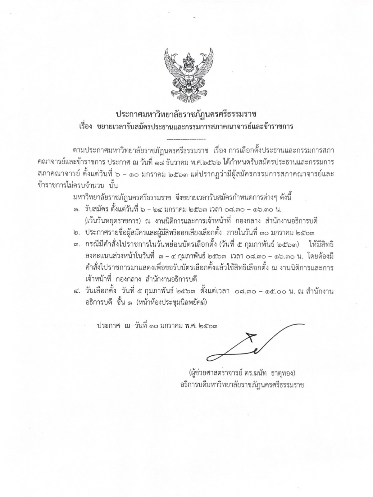 ประกาศมหาวิทยลัยราขภัฏนครศรีธรรมราช