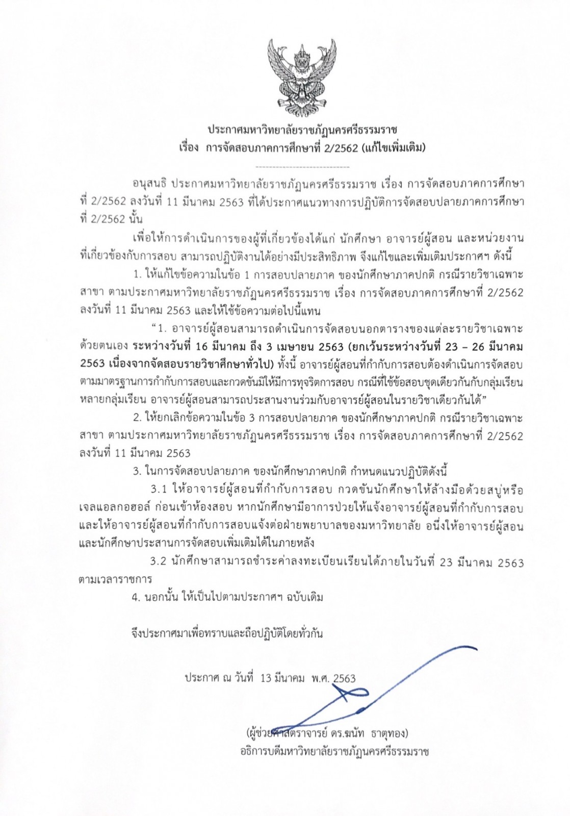 การจัดสอบภาคการศึกษาที่ 2/2562 (แก้ไขเพิ่มเติม)