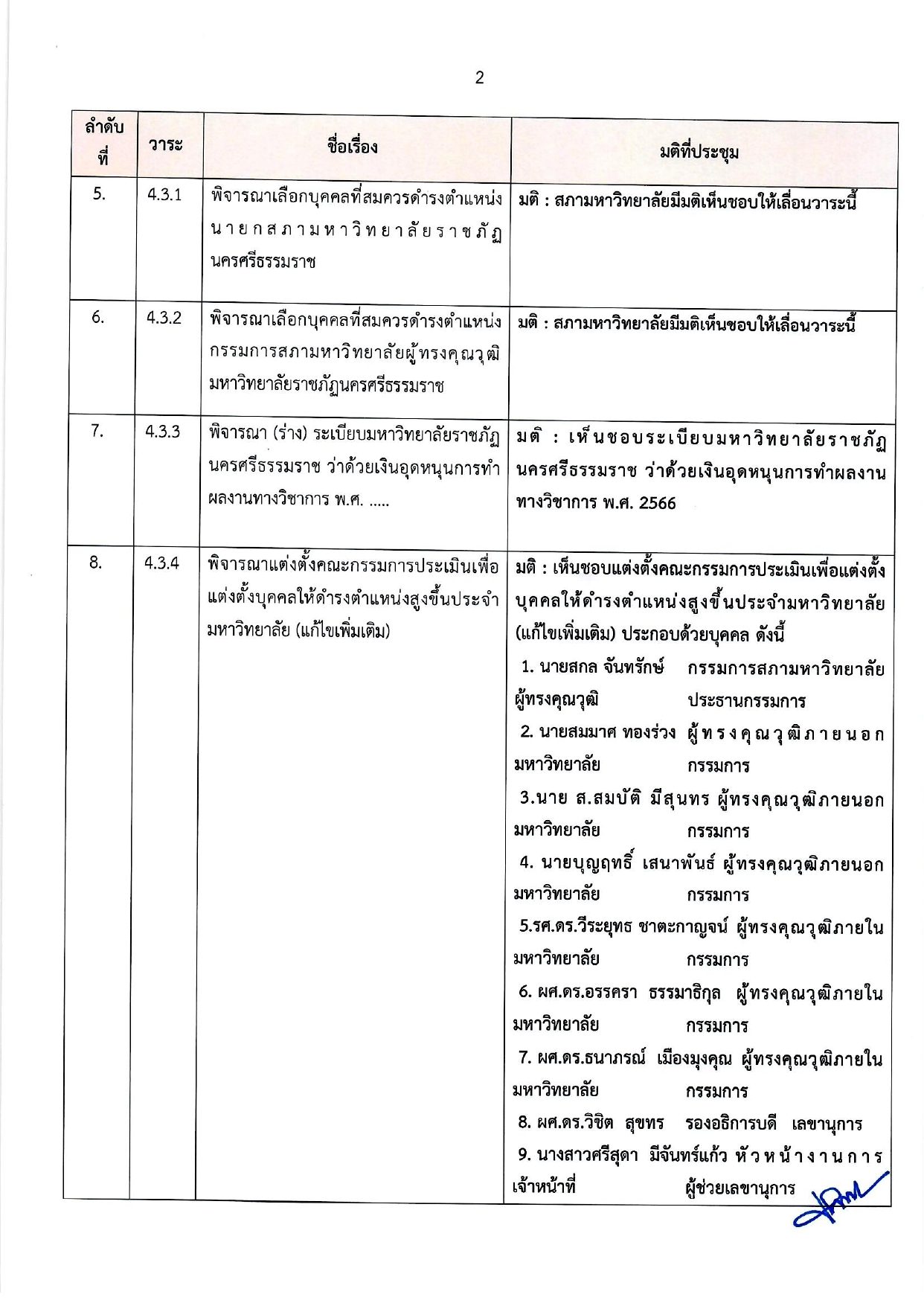 สรุปมติการประชุมสภามหาวิทยาลัย ม.ราชภัฏนครศรีธรรมราช ครั้งที่ 4/2566