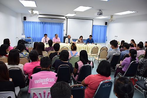เมื่อวันที่ 19 ธันวาคม 2560 ผศ.ดร. ฆนัท ธาตุทอง รักษาราชการแทนอธิการบดี มหาวิทยาลัยราชภัฏนครศรีธรรมราช เป็นประธานในที่ประชุมบุคลากรของโรงเรียน ณ ห้องประชุมชั้น 3 โรงเรียนสาธิต มหาวิทยาลัยราชภัฏนครศรีธรรมราช ซึ่งสาระสำคัญของการประชุม คือ มหาวิทยาลัยจะมีนโยบายการบริหารจัดการคุณภาพของโรงเรียนใหม่เพื่อปรับปรุงและพัฒนาคุณภาพของโรงเรียนสาธิต มีแนวทางเพื่อการบรรจุพนักงานมหาวิทยาลัยอยากให้มีการต่อสัญญาจนถึงอายุ 60 ปี มีการจัดโควต้าบรรจุครูวุฒิปริญญาตรี และปริญญาโท เพื่อบรรจุปฏิบัติหน้าที่เป็นครูโรงเรียนสาธิต มหาวิทยาลัยราชภัฏนครศรีธรรมราช (ภายใต้การอนุมัติของมหาวิทยาลัย) มีการจัดตั้งมูลนิธิการกุศลซึ่งบริหารดูแลโดยมหาวิทยาลัย ซึ่งตัดตั้งเพื่อดูแลโรงเรียนสาธิต (จัดตั้งเป็นโรงเรียนเอกชน) มีการพิจารณาการเพิ่มเงินเดือนครู โดยมีการออกระเบียบให้ออกเงินเดือนเป็น 2 เท่าของข้าราชการ เพื่อรักษาครูที่มีคุณภาพให้อยู่กับโรงเรียนและเป็นการพัฒนาศักยภาพของครู สำหรับปัญหาจากบุคคลกรของโรงเรียน ได้แก่ 1. การจัดการค่าอาหารกลางวันซึ่งบุคคลากรของโรงเรียนถูกหักเงินเดือนจากส่วนนี้ ซึ่งทางออกคือการเหลื่อมปีและเจ้าหน้าที่การเงินที่ดูแลในส่วนของโรงเรียนจะต้องรับผิดชอบ หรือมีการประมูลอาหารกลางวันจากภายนอก 2. ต้องการผู้บริหารที่สามารถประจำที่โรงเรียนได้ตลอด และ 3. การบรรจุล่าช้า และอยากให้มีทุนการศึกษาเพื่อให้ครูได้ศึกษาต่อ