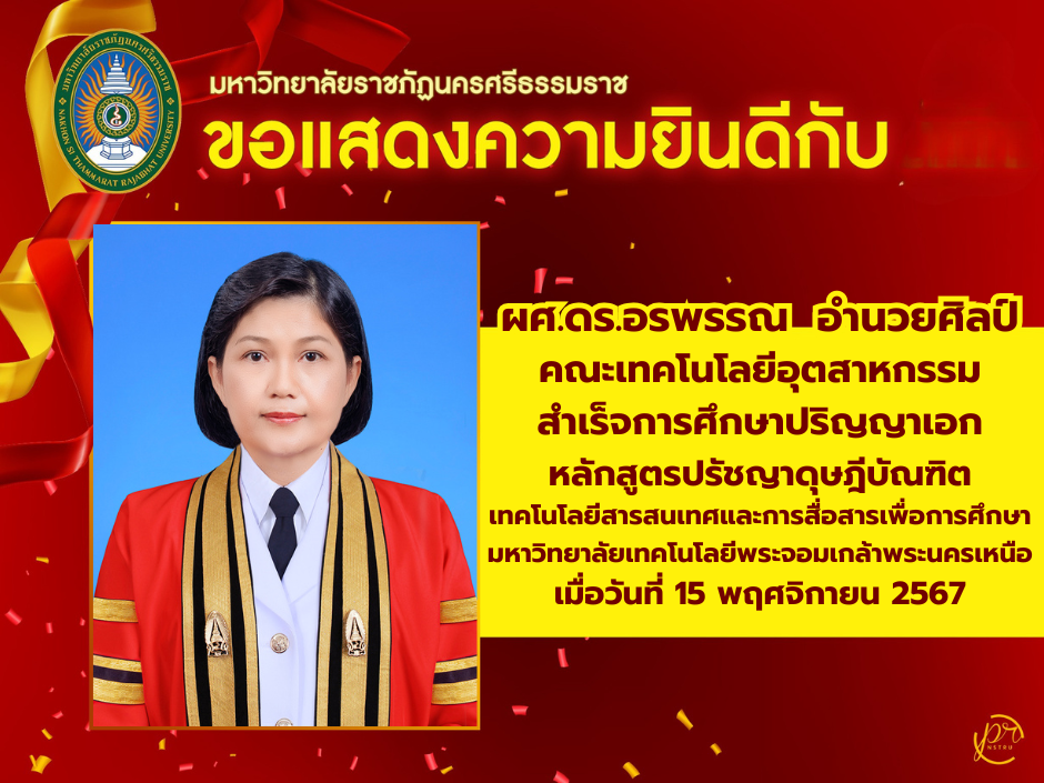 ขอแสดงความยินดีกับคณาจารย์ผู้สำเร็จการศึกษาระดับปริญญาเอก