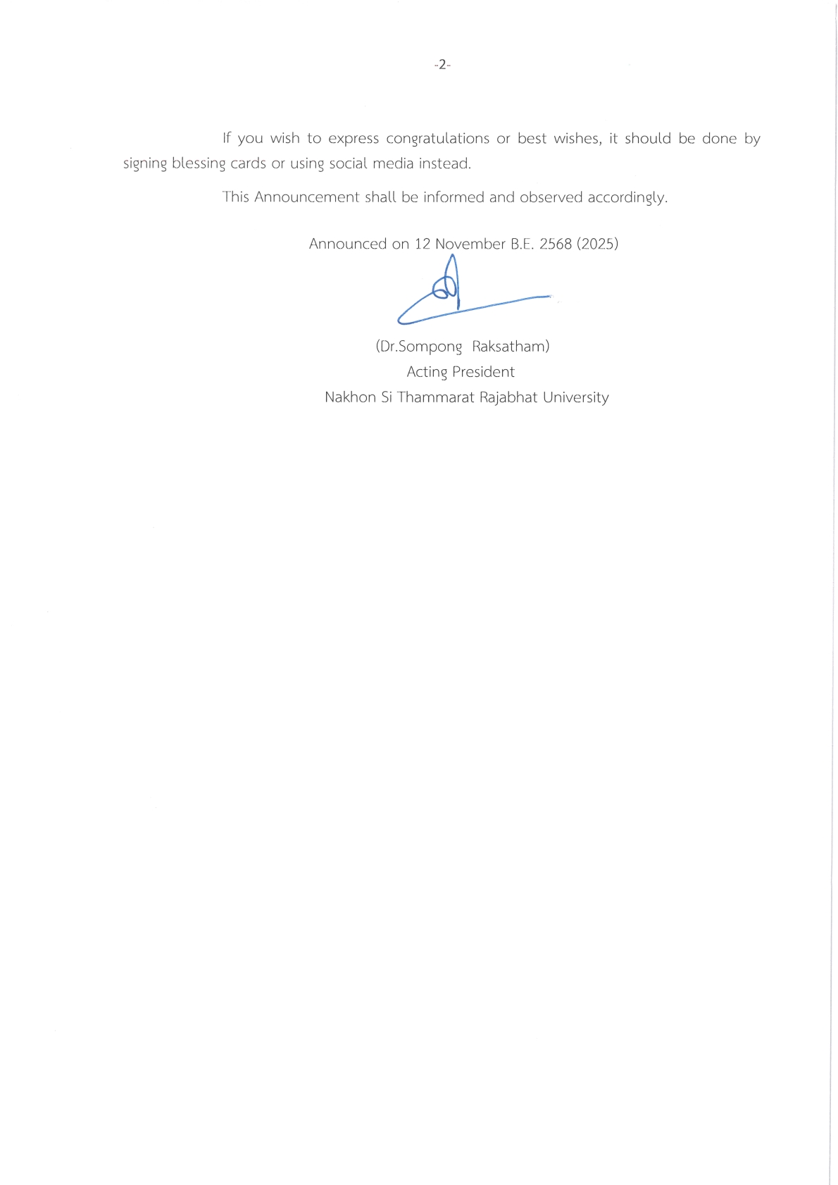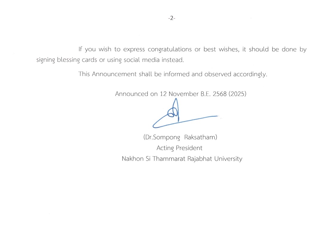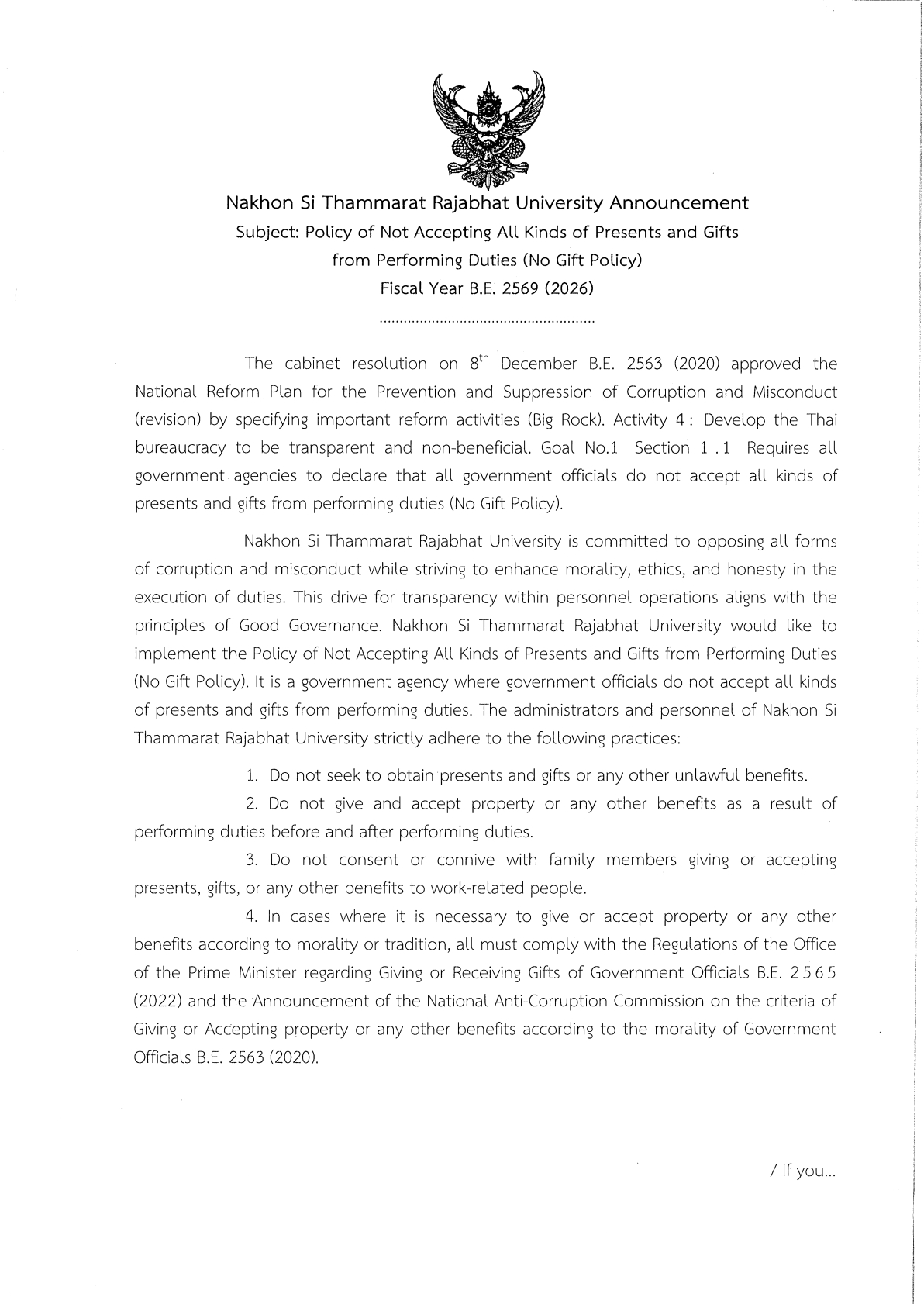 ประกาศนโยบายไม่รับของขวัญและของกำนัลทุกชนิดจากการปฏิบัติหน้าที่ (NO Gift Policy) ประจำปีงบประมาณ พ.ศ.2569