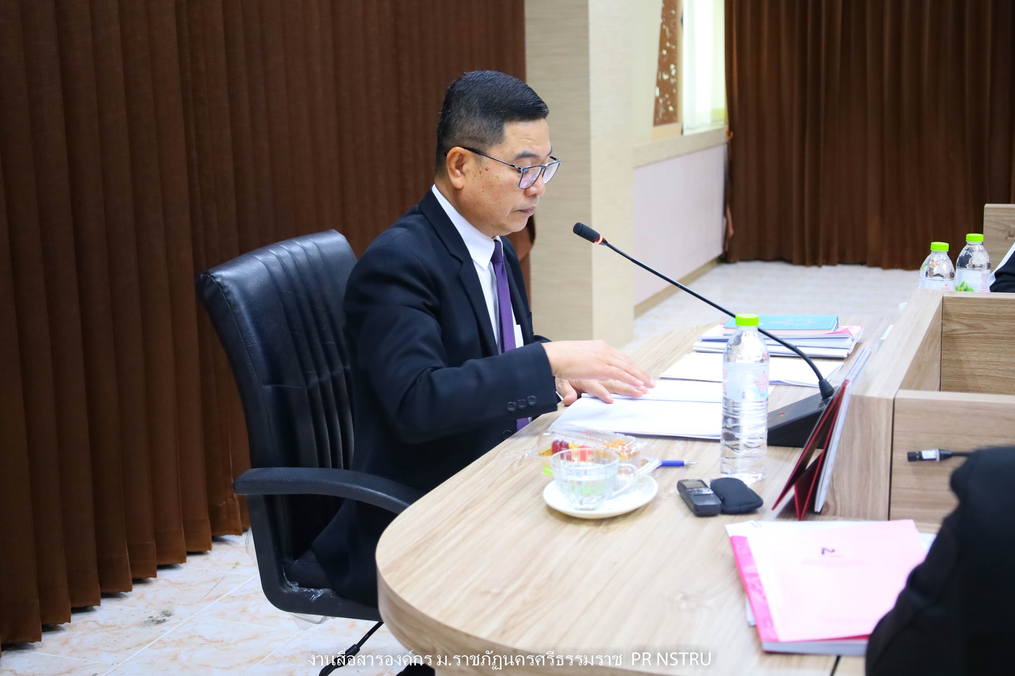เมื่อวันพฤหัสบดีที่ 4 ธันวาคม 2568 เวลา 13.00 น. ณ ห้องประชุมสุดหอม สำนักงานอธิการบดี มหาวิทยาลัยราชภัฏนครศรีธรรมราช จัดการประชุมคณะกรรมการบริหารมหาวิทยาลัย (ก.บ.) ครั้งที่ 7/2568 โดยมี ดร.สมปอง รักษาธรรม รักษาราชการแทนอธิการบดี เป็นประธาน และมีผู้บริหารทุกหน่วยงานภายในมหาวิทยาลัยเข้าร่วมประชุม