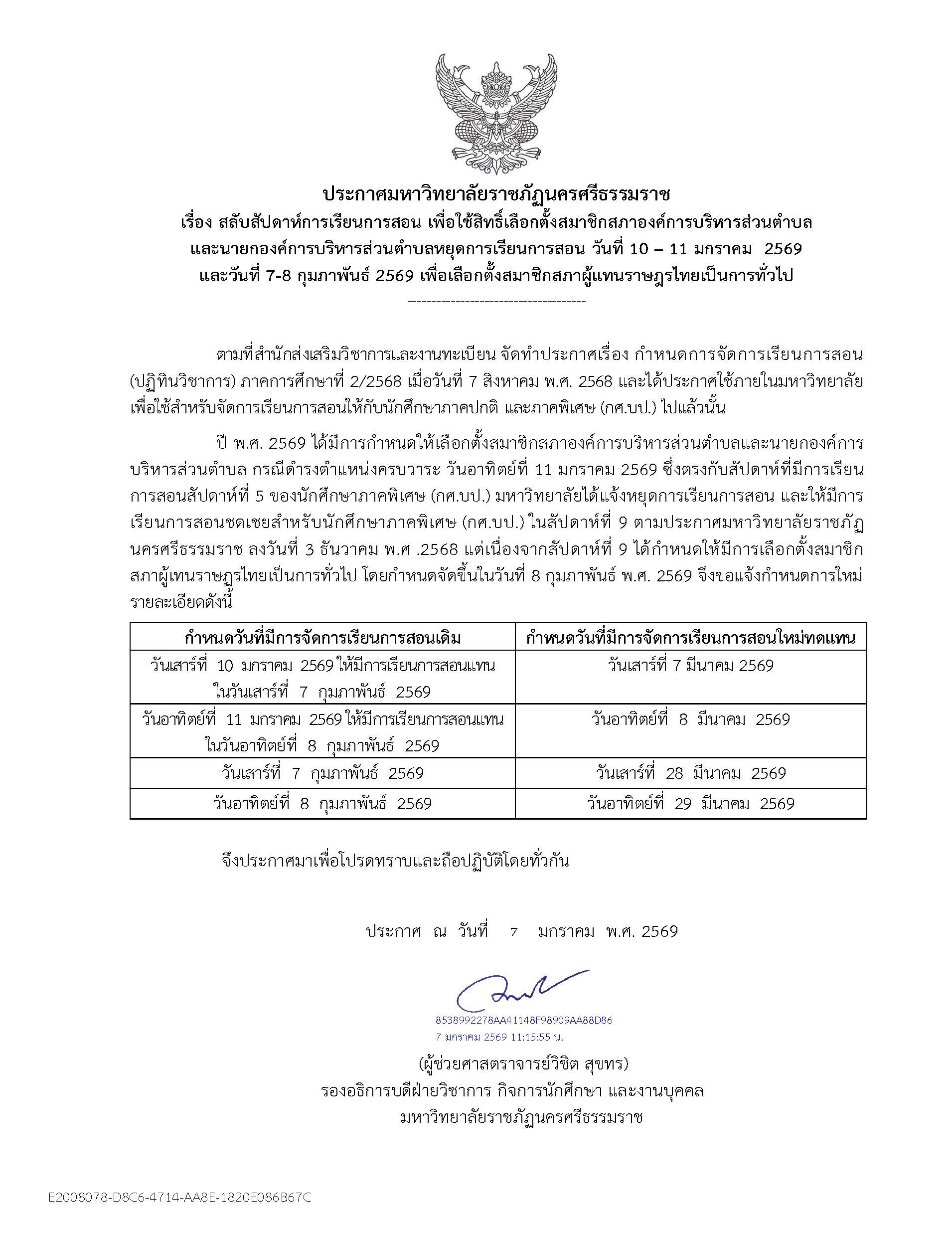 ประกาศมหาวิทยาลัยราชภัฎนครศรีธรรมราช