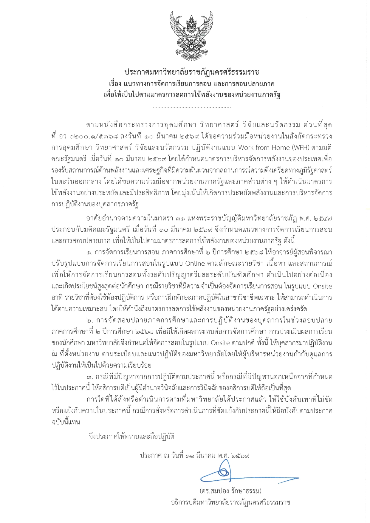 ประกาศมหาวิทยาลัยราชภัฏนครศรีธรรมราช