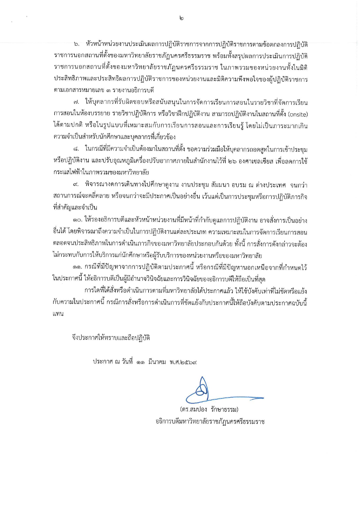 เรื่อง แนวทางการปฏิบัติงานของบุคลากรมหาวิทยาลัยราชภัฏนครศรีธรรมราช เพื่อรองรับผลกระทบจากสถานการณ์สู้รบในตะวันออกกลาง